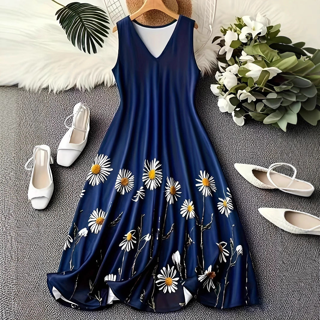 Fashion Printed Sleeveless Vest Dress